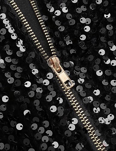• Feature: Sparkle sequin jackets,long sleeve bomber jacket,front zip,casual bomber jacket,standing collarelastic ribbed cuffs,hem and neck,metal zipper,casual loose fitted blazer.