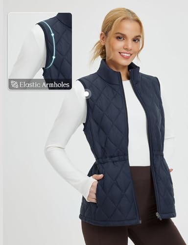 baleaf Women's Puffer Drawstring Vest Lightweight Winter Warm Stand Collar Quilted Golf Vests Water Resistant Zip Pockets 1