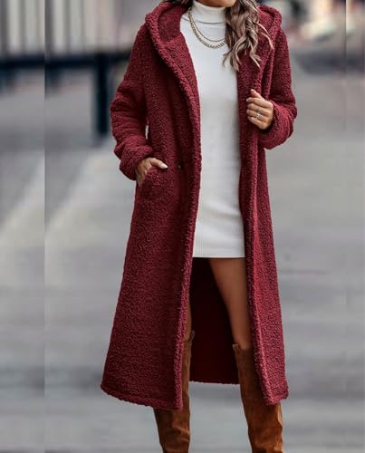 • YOUR EXCLUSIVE MATERIAL: The long faux fur sherpa hooded jacket coat is made of this fuzzy fleece faux with an oversized, loose fit silhouette and hoodie for extra soft and comfy, It feels like a teddy bear,give you cozy and make you feel like a hug in chilly winter.Keeps your legs really warm and a fashionable look in fall, and winter