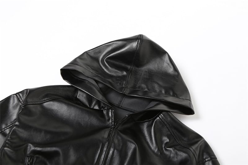 Mandonce Leather Jacket Women Zip up Hoodies Motorcycle Bomber Jacket Streetwear Cropped Trench Coat for Women 6