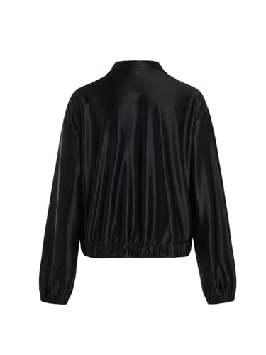 Verdusa Women's Bomber Satin Lightweight Jacket Drop Shoulder Long Sleeve Zip Up Outerwear 4