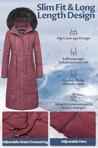 • Waterproof & Windproof Protection:This women's long puffer coat,designed for extreme cold.Its waterproof outer layer effectively repels snow, sleet,and light rain,preventing moisture from seeping into the fabric.It blocks cold air from penetrating the coat,locking in body heat.Ensuring all-around protection for both torso and legs in extreme cold.