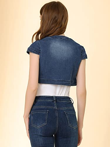 Allegra K Women's Denim Jacket Crop Casual Denim Cardigan Cap Sleeve Summer Outfits Jean Jacket Shrug 6