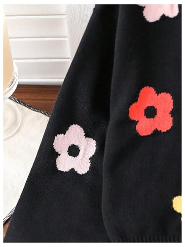 WDIRARA Girl's Floral Print V Neck Cardigan Button Front Long Sleeve Sweater Knit Top 6