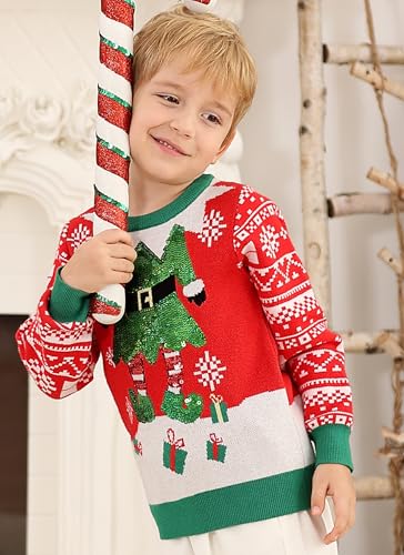 Funnycokid Toddler Ugly Christmas Sweater Girls Xmas Boys Sequin Knit Pullover Tacky Kids Holiday Tops 2-6 Years 5