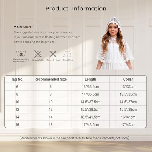 More information about Girls' Bolero Shrug Cardigan Floral Lace Princess Shawl Wedding Cape Open Front for Party Dress