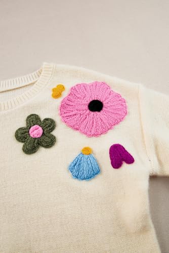 Stylish Long Sleeve Sweater: Beige Knitted with Flower Pattern 3