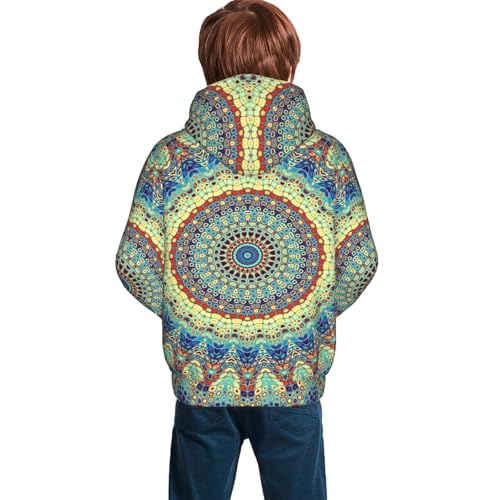 Round Mandala1 Kids Pullover Hoodies Boys Sweatshirts Girls Athletic Clothes with Pocket 4