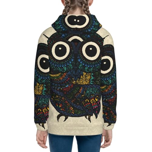 Owl with Mandala Kid Hoodies Boys Zip Up Sweatshirts Girls Pullover with Pocket 4