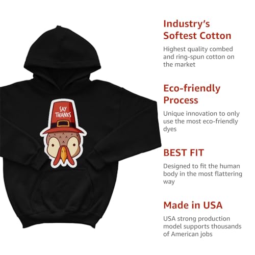• Say Thanks Kids' Hoodie is no ordinary piece of clothing. Its top-stitched hood and neck, plus ribbed cuffs and waistband, all provide a comfy fit. A must-have pick for a distinctive style, this pullover hooded sweatshirt is a fun choice for everyday wear.