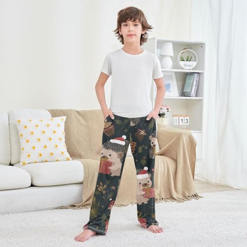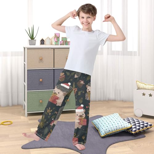 Hedgehog Pine Cones Boys Long Pants Soft Trousers Elastic Waist Kids Lounge Bottoms with Pockets S-XL 6