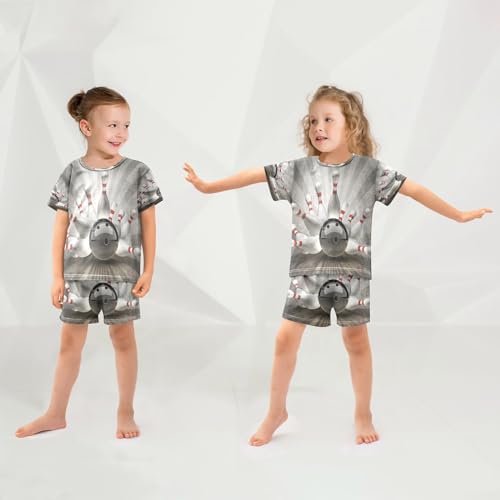 More information about senya Short Sleeve Pajamas Sets Summer Cotton Sleepwear Bowling Ball Crashing Into The Pins, 5T