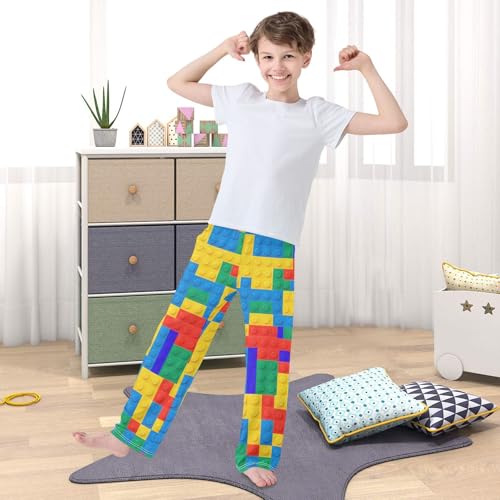 Boy's Pajama Pants 6-14 Years Elastic Waist Lounge Pajama Pants, Building Blocks 5