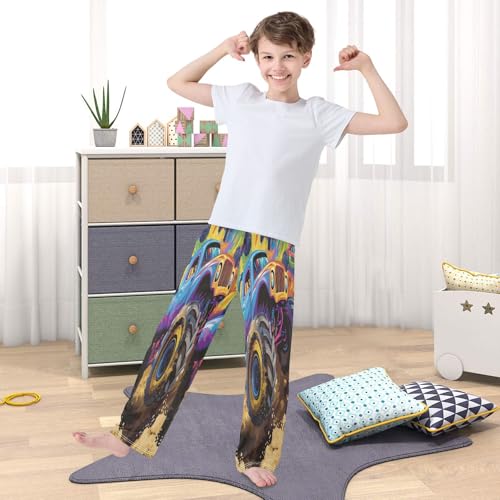 Colorful Monster Trucks Cartoon Lounge Pajama Pants Soft PJ Bottoms for Sleepwear Ages 6-14 Years 4