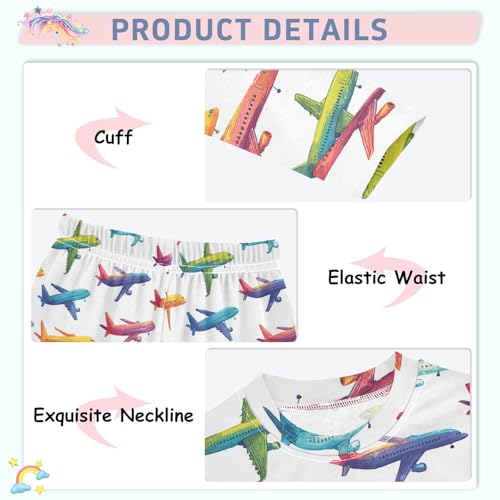 Pigsaly Pajama Set 2 Piece Green Pink Yellow Airplanes Pajama Sets Long Sleeve Pjs Sleepwear 3T 5