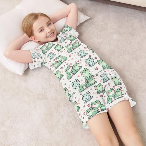 ALAZA Cute Frog Love Heart Pajamas Satin Pajama Set Short Sleeve Button Down Sleepwear 7