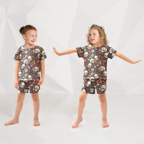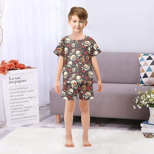 ALAZA Skulls Hearts Flowers Pajama Set Short Sleeve Sleepwear Soft Lounge Nightwear 1