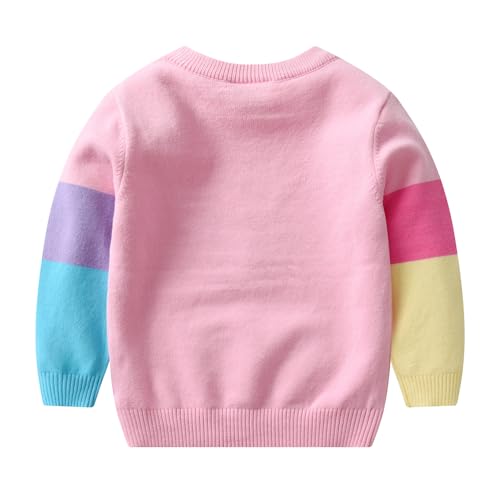 Julerwoo Toddler Girl Pink Pullover Sweaters Rainbow Prints Crewneck Knit Sweater Tops 7