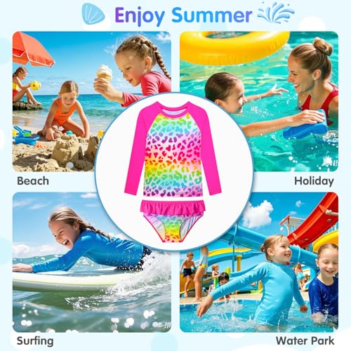 Toddler Bathing Suits for Girls Size 4t 5t Rainbow Leopard Long Sleeve Swimsuits Tankini Sets Beach Swimwear 5