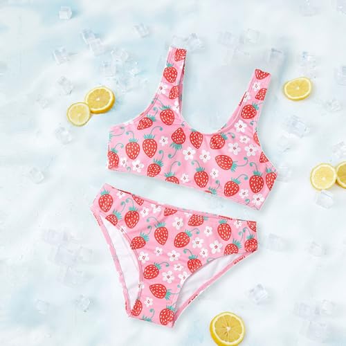 Girls Strawberry Graphic Bikinis Set Kids 2 Pieces Bathing Suit Summer Beach Casual Swimwear Younger Teen Bikini 4