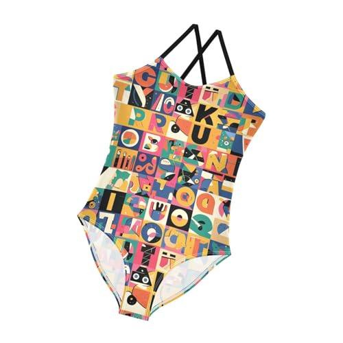 KLL Scandinavian Style Alphabet Toddler Girls 1-Piecing Swimsuit Summer Swimwear Adjustable Strap Quick-Dry 6