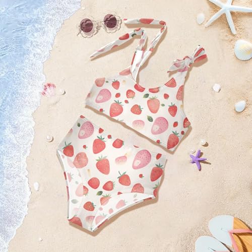 More information about Strawberry Pattern Girls Two Piece Kids Bikini Set Scoop Neck Swimsuit Swimming Suits Cute Shoulder Strap