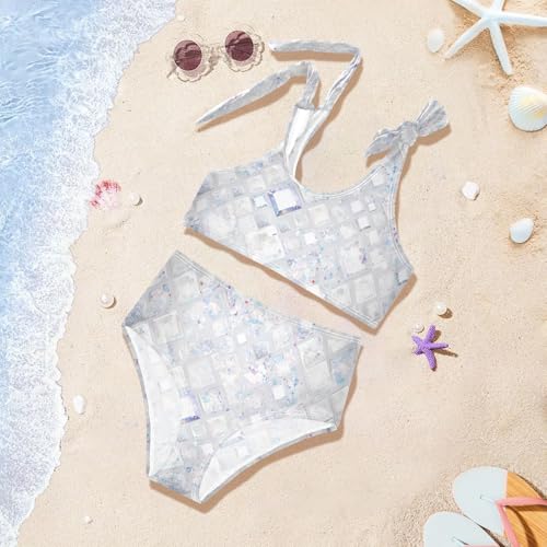 KLL Silver Glitter Pattern Shiny Sparkles Girl 2 Piece Bikini Sets Scoop Neck Bathing Suit Swimwear Cute Shoulder Strap 2