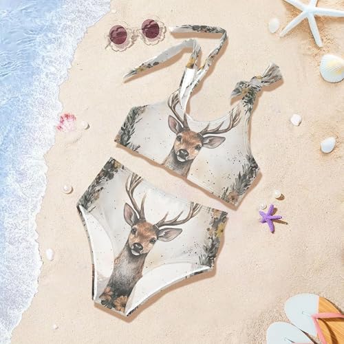 Deer Animal Floral Wreath Girls Bikini Sets 2 Piece Swimsuits Bathing Suit Swimwear 1