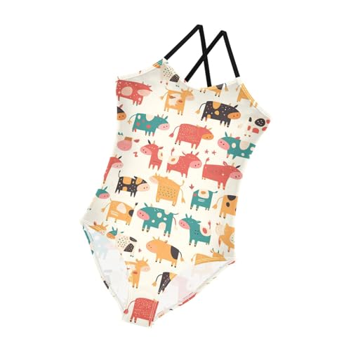 Cute Cow Pattern Hand Drawn Kids Girls 1-Piece Bathing Suit Beach Swimming Suits Adjustable Shoulder Strap Cute 6