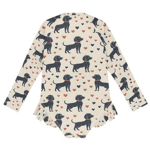 ALAZA Black Puppy Dog Love Heart Girls One Piece Swimsuit Long Sleeve Rash Guard Swimsuits UV 50+ Swimwear Zipper 1