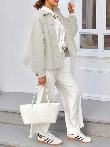 Tankaneo Womens Oversized Cropped Trench Coat Batwing Sleeve Single Breasted Lapel Casual Jackets Fall Button up Outerwear 2