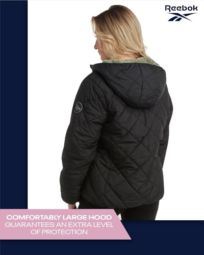 HOT ! Reebok Women's Puffer Jacket - Quilted Puffer Reversible to Faux Fleece Jacket - Insulated Winter Jackets for Women (S-XL)