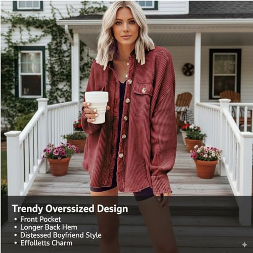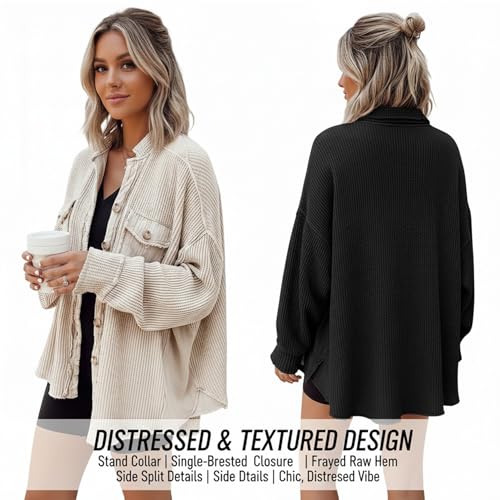 • 【High-Quality Material】Crafted from comfy and lightweight waffle knit fabric, the women’s shacket offers breathability without being too heavy, making it an ideal layering piece for spring and fall.