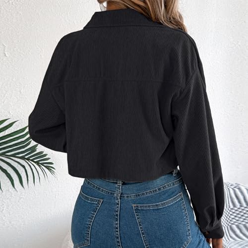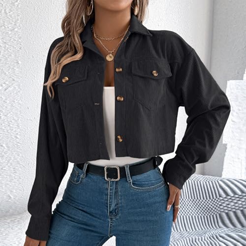 HOT ! Womens Cropped Jackets Shackets Corduroy Button Shacket Jacket Lightweight Fall Long Sleeve Outerwear with Pocket