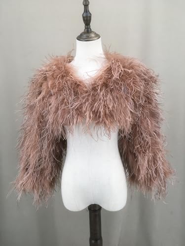 LVCOMEFF Women Natural Ostrich Feather Crop Jacket Bolero Coat For Wedding Party Luxurious 4