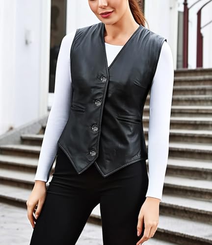 • Luxe & Ceaseless Design – This women's leather vest has a smart slim fit with button-up closure that makes an unabashed but smart addition to your wardrobe. Ideal for layering over tops or dresses.