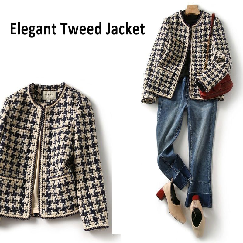 HOT ! Women’s Tweed Blazers Jackets, Open Front Plaid Tweed Suit Jacket, Elegant Business Work Jacket Spring Fall Winter