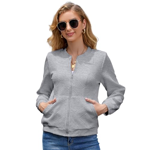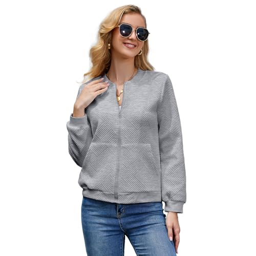 WROLEM Women Zip Up Sweatshirts with Pockets Long Sleeve Jackets Casual Loose Stand Collar Lightweight Short Outwear 3
