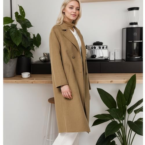 More information about Women's Double Sided Blended Long Wool Pea Coat,Notch Lapel Overcoat Wool Jacket Long Trench Wool Dress Coat,Brown