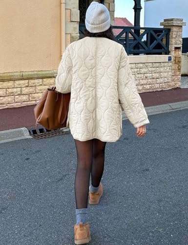 Flygo Women's Oversized Quilted Lightweight Jacket Button Down Puffer Padded Outerwear with Pocket(Beige-M) 1