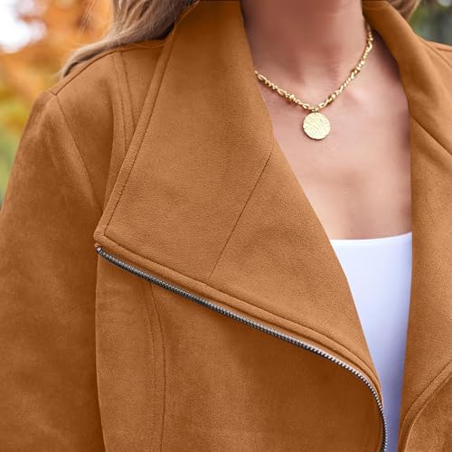 More information about Suede Jacket Women Casual Zipper Cropped Outwear Long Sleeve Moto Biker Jacket Coats With Pockets Fall Clothes
