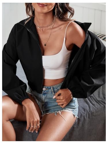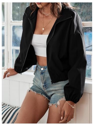 SweatyRocks Women's Zip Up Cropped Windbreaker Jackets Collared Long Sleeve Outerwear Jacket 1