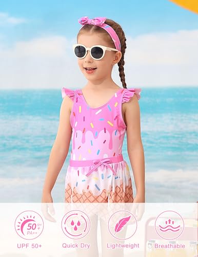 ALISISTER Girls' Swimsuit Summer 3 Piece Bathing Suits Beach Swimwear with Cover Up Skirt and Headband for 3-7 Years 4