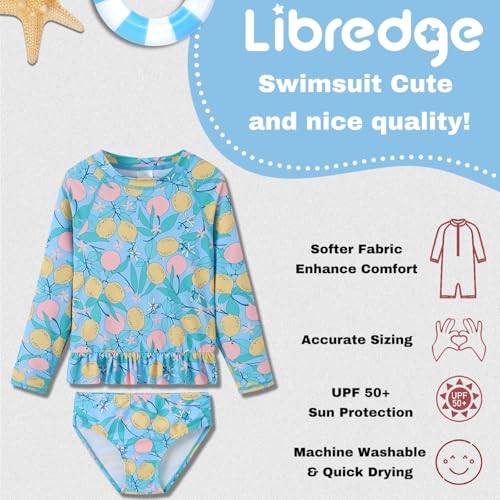 Girls Long Sleeve Rash Guard 2-Piece Swimsuit Set Bathing Suits UPF 50+ Sun Protection 3-8 Years 7