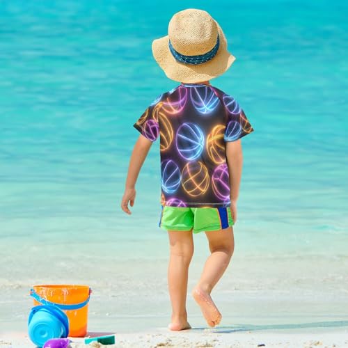 Boys Short Sleeve T-Shirts America Basketball Neon Rashguard Kids Swim Shirts Sun UPF 50+ 1