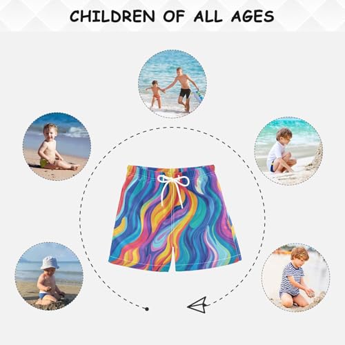 Pigsaly Boys' Swim Board Shorts Rainbow Wave Boy's Swim Trunks Kids Swimwear XS 2