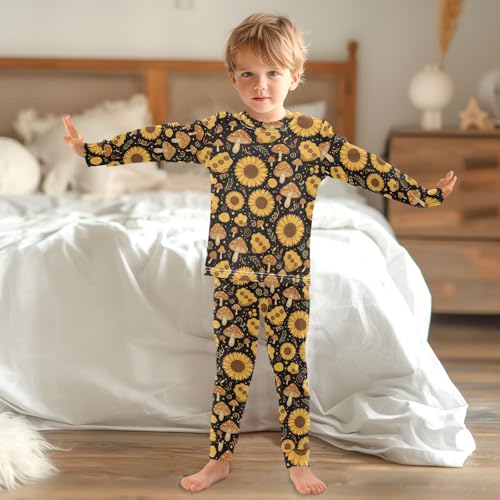 Pajama Sets Long Sleeve Sunflower Mushroom Honeycomb Pattern Soft Comfy Sleepwear 2 Piece PJS 3-8T 3