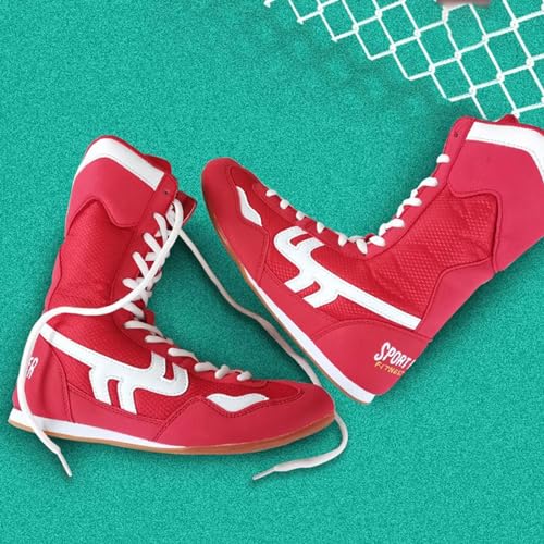 • 💪Unbeatable 𝐏rotection and Comfort: The high-top design of our wrestling shoes provides maximum 𝐏rotection for your ankles, while the breathable combination of synthetic and mesh materials ensures optimal comfort during even the most 𝗶𝐧tense workouts. Whether you're training at the gym or competing in the ring, our shoes will keep you 𝐏rotected and comfortable, allowing you to focus on your performance.