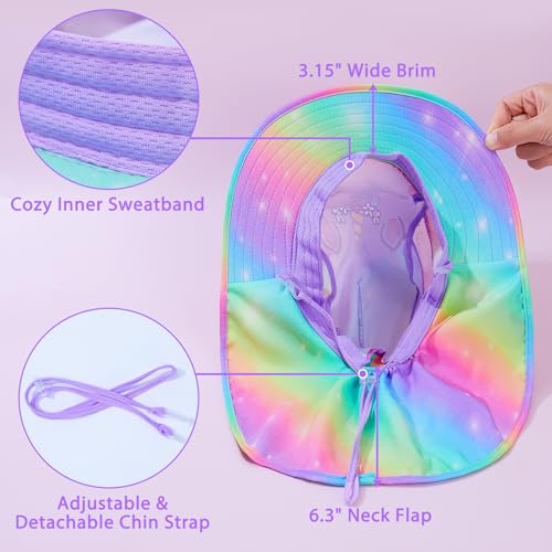Kids Sun Hat UV Protection Unicorn Summer Beach Play Hats Wide Brim Neck Flap for Girls Boys 4