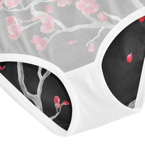 Red Flowers Gray Branches Black Toddler Girls Underwear 2t Cotton Little Girl Panties Fancy Kids Briefs Undies 5